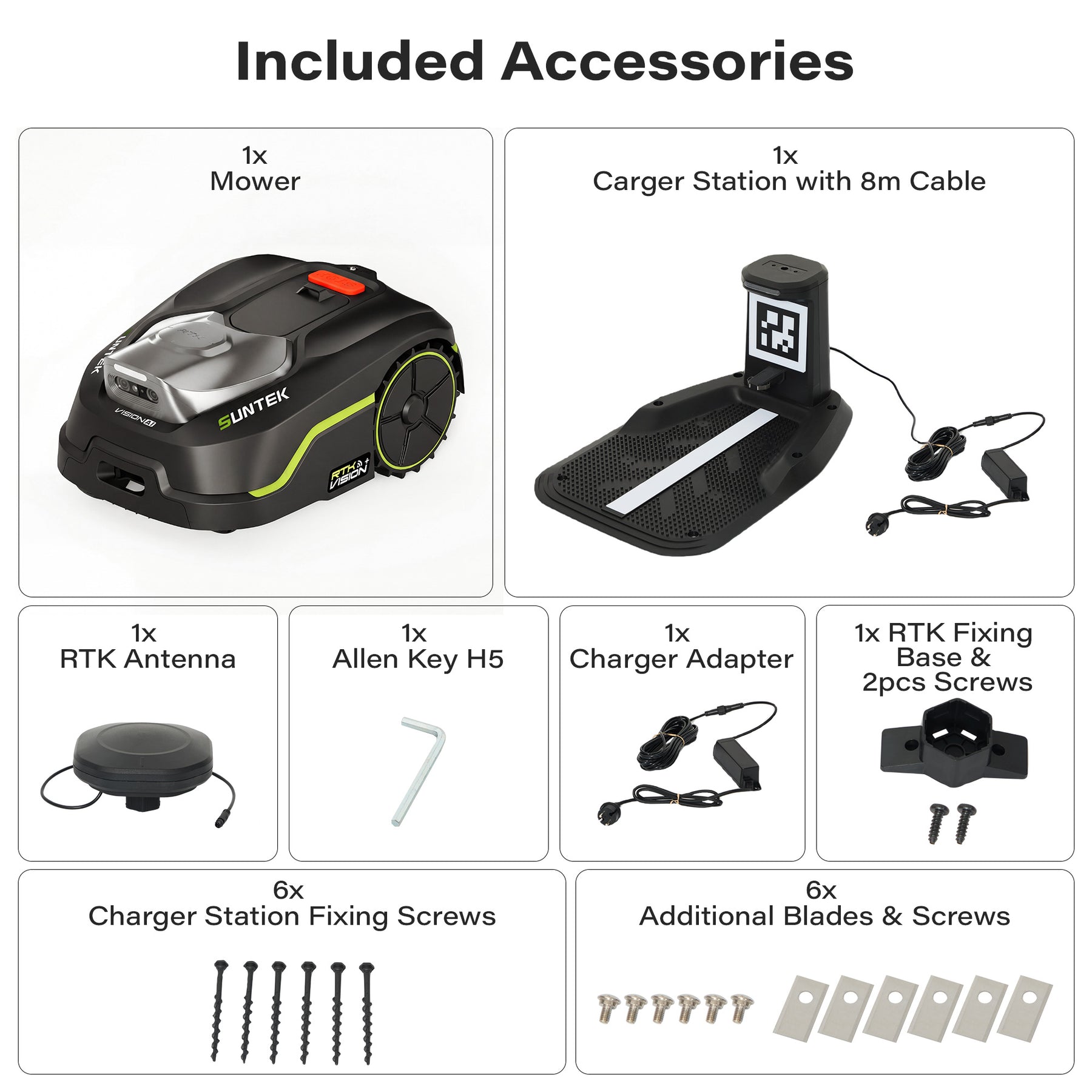 【RTK+VISION Robotic Lawn Mower】 This SUNTEK robot lawn mower combines RTK positioning technology with an AI camera for centimeter-level precise positioning. Even under light obstacles or changing weather conditions, it provides a stable absolute position reference. As a result, the robot mower also features anti-theft protection. When the mower exceeds the boundaries of your garden, you will immediately receive a notification on your smartphone.